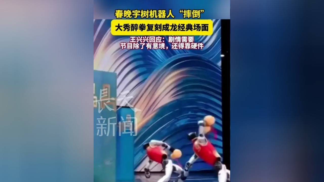 2026-04-19 06:32:24分类:绥化阅读(49284) 大过年的,谁还没被春晚那个“喝高了”的机器人圈粉?2号晚上,央视春晚舞台上,宇树科技的H1人形机器人一个踉跄“醉倒”在地,全网瞬间炸锅——有人说“这技术也太拉垮了”,也有人惊呼“这醉拳意境绝了”。直到宇树CEO王兴兴出来揭秘:“这摔倒是导演组特意设计的,要的就是这种东倒西歪的帅!” 要说这机器人是真会“演”。当时它正表演武术节目《武BOT》,一套行云流水的醉拳打完,突然脚下一软“啪”地坐地上,关节还像喝多了似的晃悠两下,然后撑着地面鲤鱼打挺站起来,全场观众直接起立鼓掌。后来导演迟宇涵透露,这动作彩排了三十多次,就为了让机器人精准复刻“醉八仙”里“跌跌撞撞却暗藏章法”的精髓。你别说,这波“失误”可比完美表演吸睛多了,第二天“机器人摔出文化自信”的话题直接冲上热搜第一。